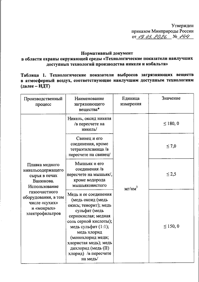 ПРИКАЗ Минприроды РФ от 19.03.2026 N 144