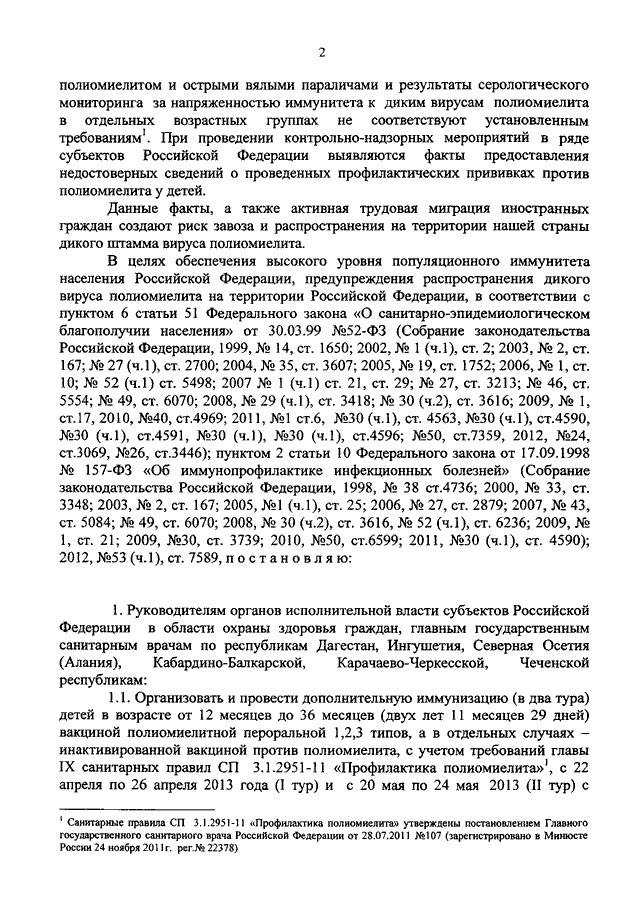 "О ПРОВЕДЕНИИ ДОПОЛНИТЕЛЬНОЙ ИММУНИЗАЦИИ ПРОТИВ ПОЛИОМИЕЛИТА В РОССИЙСКОЙ ФЕДЕРАЦИИ В 2013 ГОДУ"