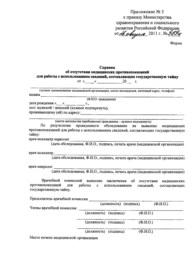 "ОБ УТВЕРЖДЕНИИ ПЕРЕЧНЯ МЕДИЦИНСКИХ ПРОТИВОПОКАЗАНИЙ ДЛЯ РАБОТЫ С ИСПОЛЬЗОВАНИЕМ СВЕДЕНИЙ, СОСТАВЛЯЮЩИХ ГОСУДАРСТВЕННУЮ ТАЙНУ, ПОРЯДКА ПОЛУЧЕНИЯ И ФОРМЫ СПРАВКИ ОБ ОТСУТСТВИИ МЕДИЦИНСКИХ ПРОТИВОПОКАЗАНИЙ ДЛЯ РАБОТЫ С ИСПОЛЬЗОВАНИЕМ СВЕДЕНИЙ, СОСТАВЛЯЮЩИХ ГОСУДАРСТВЕННУЮ ТАЙНУ"