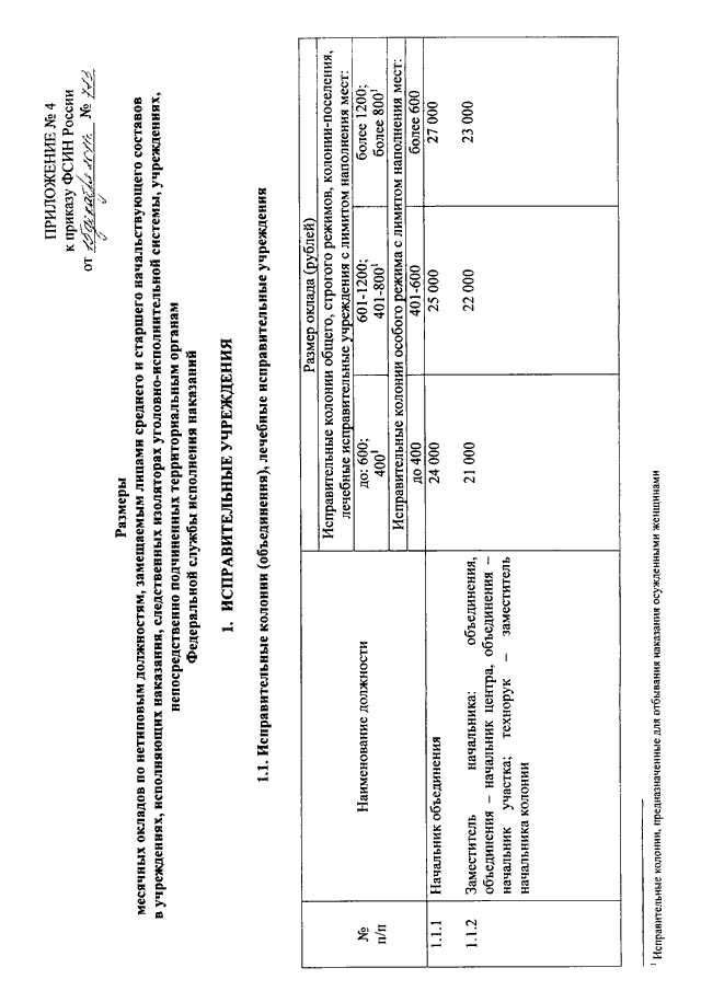 "ОБ УСТАНОВЛЕНИИ РАЗМЕРОВ МЕСЯЧНЫХ ОКЛАДОВ ПО НЕТИПОВЫМ ДОЛЖНОСТЯМ СОТРУДНИКОВ УГОЛОВНО - ИСПОЛНИТЕЛЬНОЙ СИСТЕМЫ"