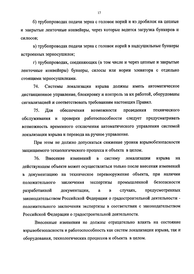 "ОБ УТВЕРЖДЕНИИ ФЕДЕРАЛЬНЫХ НОРМ И ПРАВИЛ В ОБЛАСТИ ПРОМЫШЛЕННОЙ БЕЗОПАСНОСТИ "ПРАВИЛА БЕЗОПАСНОСТИ ВЗРЫВОПОЖАРООПАСНЫХ ПРОИЗВОДСТВЕННЫХ ОБЪЕКТОВ ХРАНЕНИЯ И ПЕРЕРАБОТКИ РАСТИТЕЛЬНОГО СЫРЬЯ"