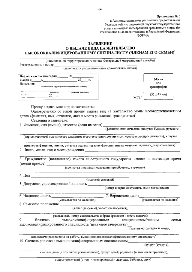 "ОБ УТВЕРЖДЕНИИ АДМИНИСТРАТИВНОГО РЕГЛАМЕНТА ПРЕДОСТАВЛЕНИЯ ФЕДЕРАЛЬНОЙ МИГРАЦИОННОЙ СЛУЖБОЙ ГОСУДАРСТВЕННОЙ УСЛУГИ ПО ВЫДАЧЕ ИНОСТРАННЫМ ГРАЖДАНАМ И ЛИЦАМ БЕЗ ГРАЖДАНСТВА ВИДА НА ЖИТЕЛЬСТВО В РОССИЙСКОЙ ФЕДЕРАЦИИ"
