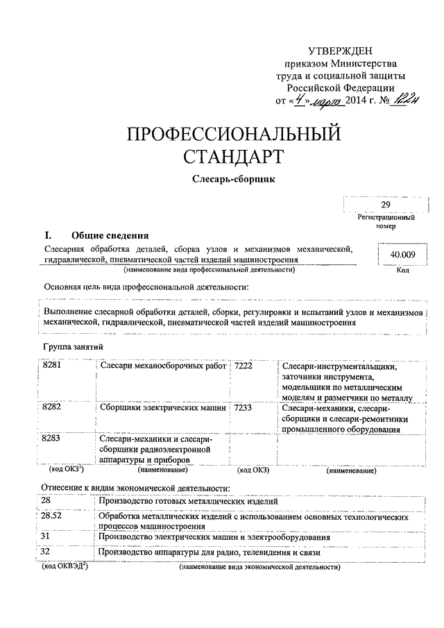 "ОБ УТВЕРЖДЕНИИ ПРОФЕССИОНАЛЬНОГО СТАНДАРТА "СЛЕСАРЬ - СБОРЩИК"