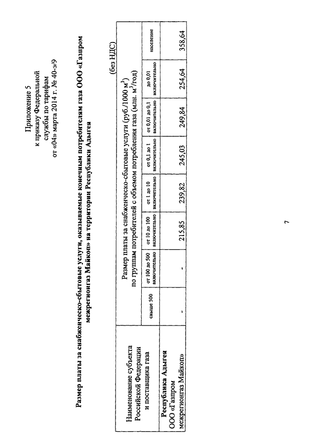 "ОБ УТВЕРЖДЕНИИ РАЗМЕРА ПЛАТЫ ЗА СНАБЖЕНЧЕСКО - СБЫТОВЫЕ УСЛУГИ, ОКАЗЫВАЕМЫЕ КОНЕЧНЫМ ПОТРЕБИТЕЛЯМ ГАЗА ООО "ГАЗПРОМ МЕЖРЕГИОНГАЗ МАЙКОП", И ТАРИФОВ НА УСЛУГИ ПО ТРАНСПОРТИРОВКЕ ГАЗА ПО ГАЗОРАСПРЕДЕЛИТЕЛЬНЫМ СЕТЯМ ОАО "ГАЗПРОМ ГАЗОРАСПРЕДЕЛЕНИЕ МАЙКОП"