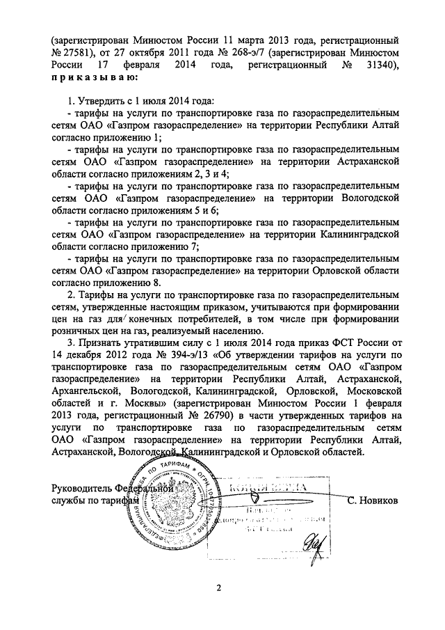 "ОБ УТВЕРЖДЕНИИ ТАРИФОВ НА УСЛУГИ ПО ТРАНСПОРТИРОВКЕ ГАЗА ПО ГАЗОРАСПРЕДЕЛИТЕЛЬНЫМ СЕТЯМ ОАО "ГАЗПРОМ ГАЗОРАСПРЕДЕЛЕНИЕ" НА ТЕРРИТОРИИ РЕСПУБЛИКИ АЛТАЙ, АСТРАХАНСКОЙ, ВОЛОГОДСКОЙ, КАЛИНИНГРАДСКОЙ И ОРЛОВСКОЙ ОБЛАСТЕЙ"