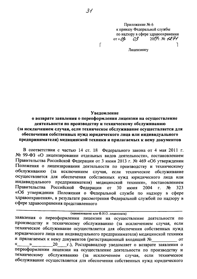 ПРИКАЗ Росздравнадзора от 03.03.2014 N 1271