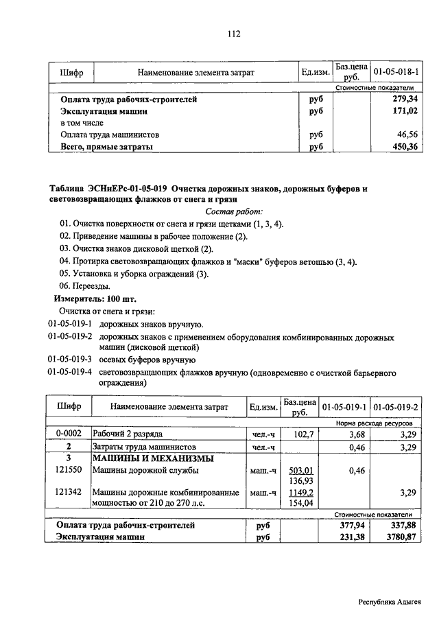 "ОБ УТВЕРЖДЕНИИ ОТРАСЛЕВЫХ СМЕТНЫХ НОРМАТИВОВ, ПРИМЕНЯЕМЫХ ПРИ ПРОВЕДЕНИИ РАБОТ ПО СОДЕРЖАНИЮ АВТОМОБИЛЬНЫХ ДОРОГ ФЕДЕРАЛЬНОГО ЗНАЧЕНИЯ И ДОРОЖНЫХ СООРУЖЕНИЙ, ЯВЛЯЮЩИХСЯ ТЕХНОЛОГИЧЕСКОЙ ЧАСТЬЮ ЭТИХ ДОРОГ НА ТЕРРИТОРИИ РЕСПУБЛИКИ АДЫГЕЯ"