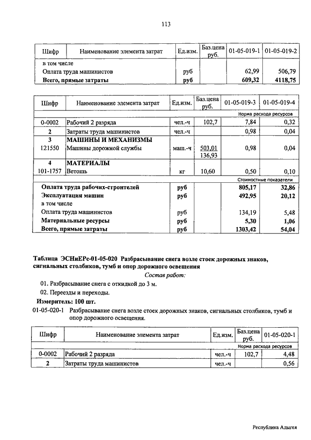 "ОБ УТВЕРЖДЕНИИ ОТРАСЛЕВЫХ СМЕТНЫХ НОРМАТИВОВ, ПРИМЕНЯЕМЫХ ПРИ ПРОВЕДЕНИИ РАБОТ ПО СОДЕРЖАНИЮ АВТОМОБИЛЬНЫХ ДОРОГ ФЕДЕРАЛЬНОГО ЗНАЧЕНИЯ И ДОРОЖНЫХ СООРУЖЕНИЙ, ЯВЛЯЮЩИХСЯ ТЕХНОЛОГИЧЕСКОЙ ЧАСТЬЮ ЭТИХ ДОРОГ НА ТЕРРИТОРИИ РЕСПУБЛИКИ АДЫГЕЯ"