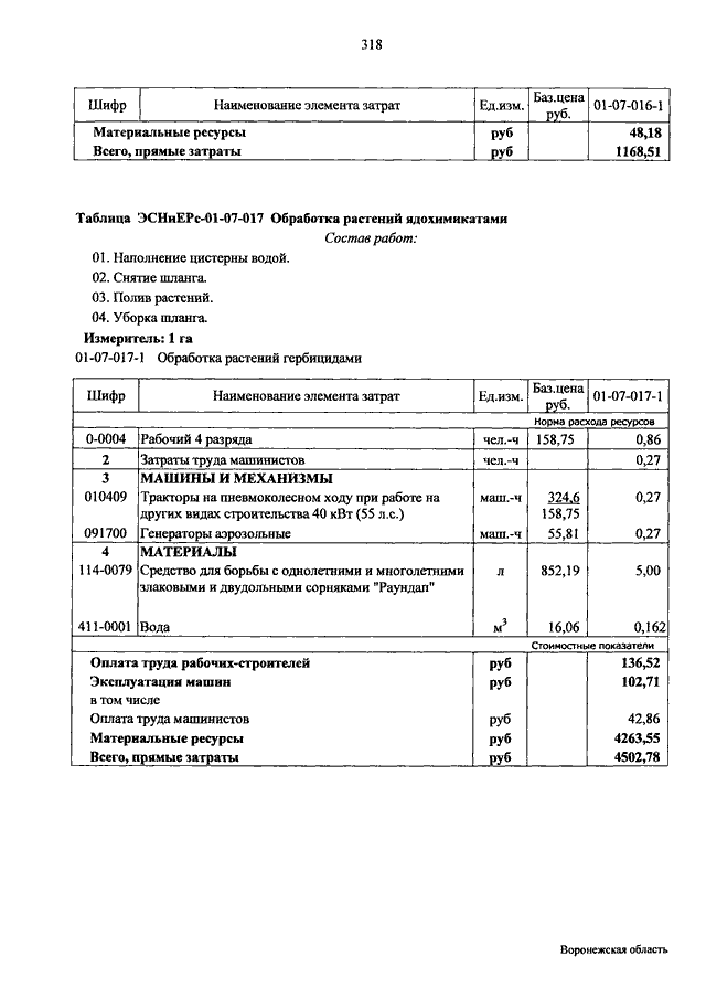 "ОБ УТВЕРЖДЕНИИ ОТРАСЛЕВЫХ СМЕТНЫХ НОРМАТИВОВ, ПРИМЕНЯЕМЫХ ПРИ ПРОВЕДЕНИИ РАБОТ ПО СОДЕРЖАНИЮ АВТОМОБИЛЬНЫХ ДОРОГ ФЕДЕРАЛЬНОГО ЗНАЧЕНИЯ И ДОРОЖНЫХ СООРУЖЕНИЙ, ЯВЛЯЮЩИХСЯ ТЕХНОЛОГИЧЕСКОЙ ЧАСТЬЮ ЭТИХ ДОРОГ НА ТЕРРИТОРИИ ВОРОНЕЖСКОЙ ОБЛАСТИ"