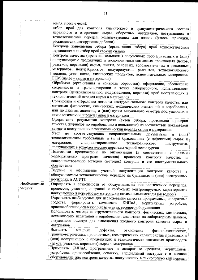 "ОБ УТВЕРЖДЕНИИ ПРОФЕССИОНАЛЬНОГО СТАНДАРТА "КОНТРОЛЕР КАЧЕСТВА ПРОДУКЦИИ И ТЕХНОЛОГИЧЕСКОГО ПРОЦЕССА В ЧЕРНОЙ МЕТАЛЛУРГИИ"