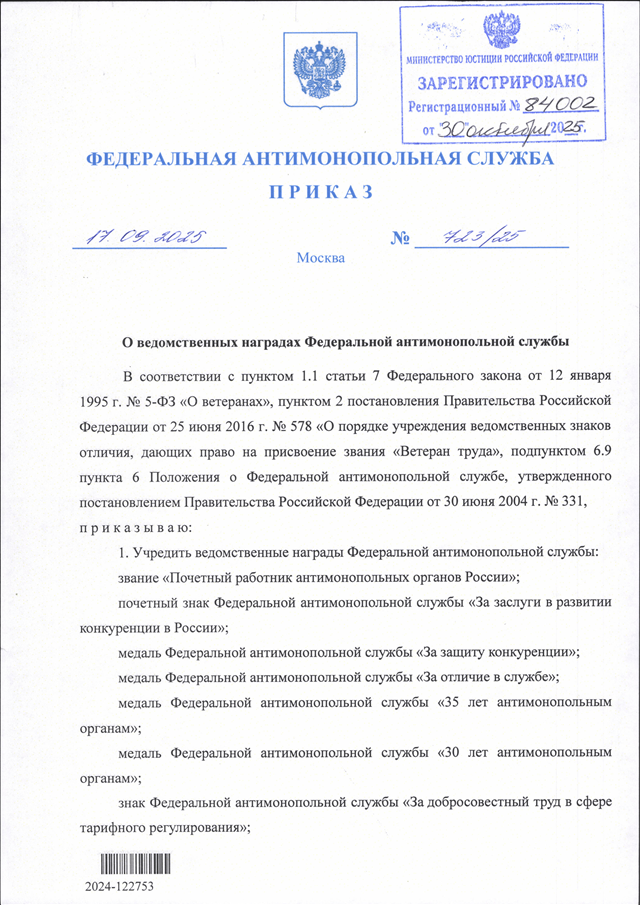 ПРИКАЗ Федеральной антимонопольной службы от 17.09.2025 N 723/25