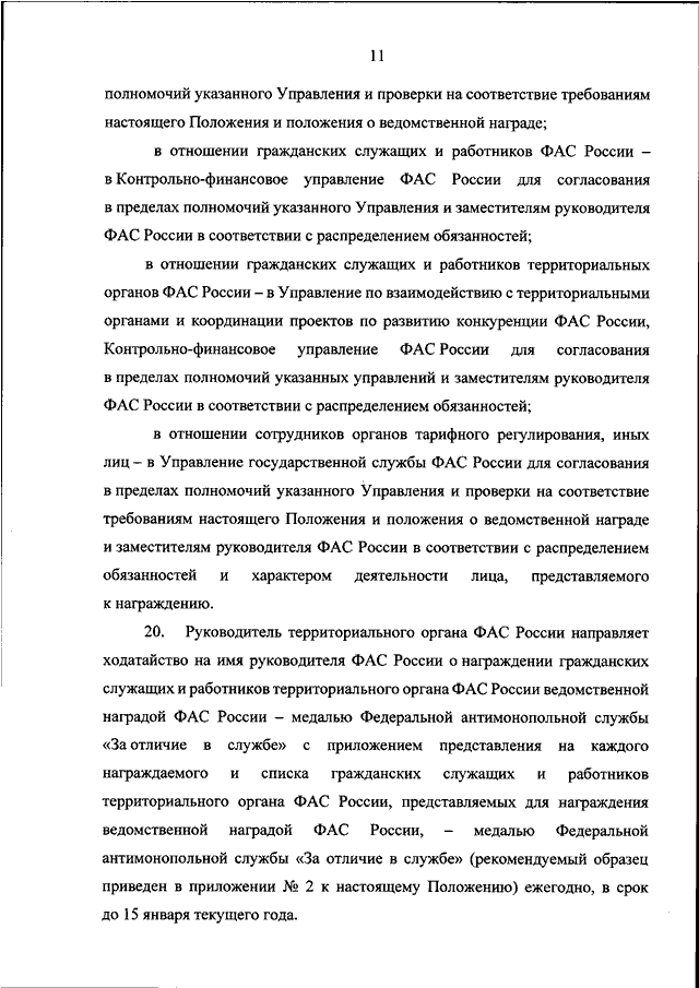 "О ВЕДОМСТВЕННЫХ НАГРАДАХ ФЕДЕРАЛЬНОЙ АНТИМОНОПОЛЬНОЙ СЛУЖБЫ"