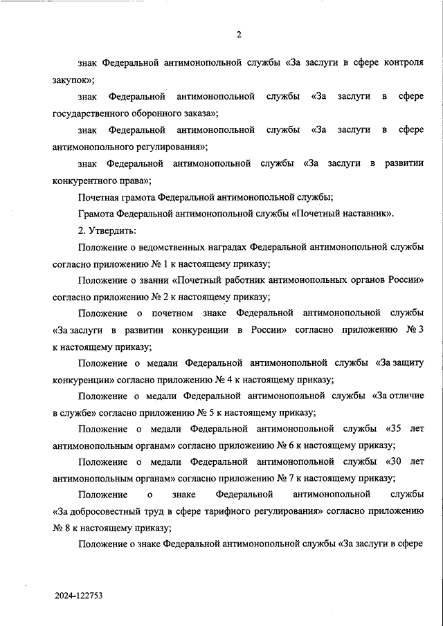 "О ВЕДОМСТВЕННЫХ НАГРАДАХ ФЕДЕРАЛЬНОЙ АНТИМОНОПОЛЬНОЙ СЛУЖБЫ"
