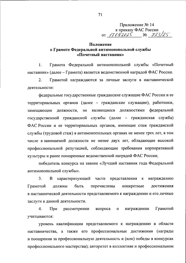 ПРИКАЗ Федеральной антимонопольной службы от 17.09.2025 N 723/25