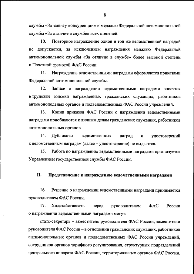 "О ВЕДОМСТВЕННЫХ НАГРАДАХ ФЕДЕРАЛЬНОЙ АНТИМОНОПОЛЬНОЙ СЛУЖБЫ"