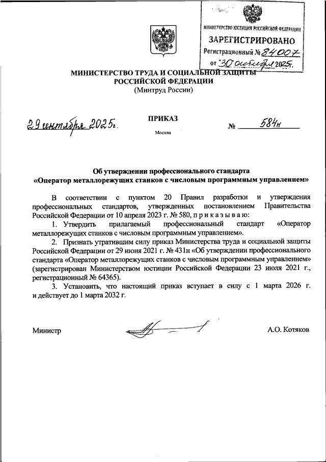ПРИКАЗ Минтруда РФ от 29.09.2025 N 584н