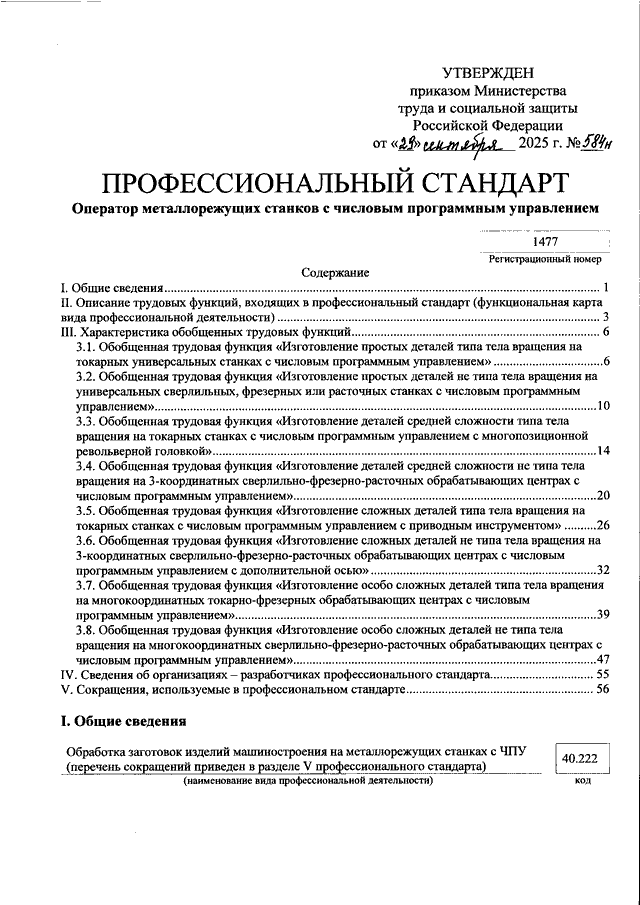 "ОБ УТВЕРЖДЕНИИ ПРОФЕССИОНАЛЬНОГО СТАНДАРТА "ОПЕРАТОР МЕТАЛЛОРЕЖУЩИХ СТАНКОВ С ЧИСЛОВЫМ ПРОГРАММНЫМ УПРАВЛЕНИЕМ"