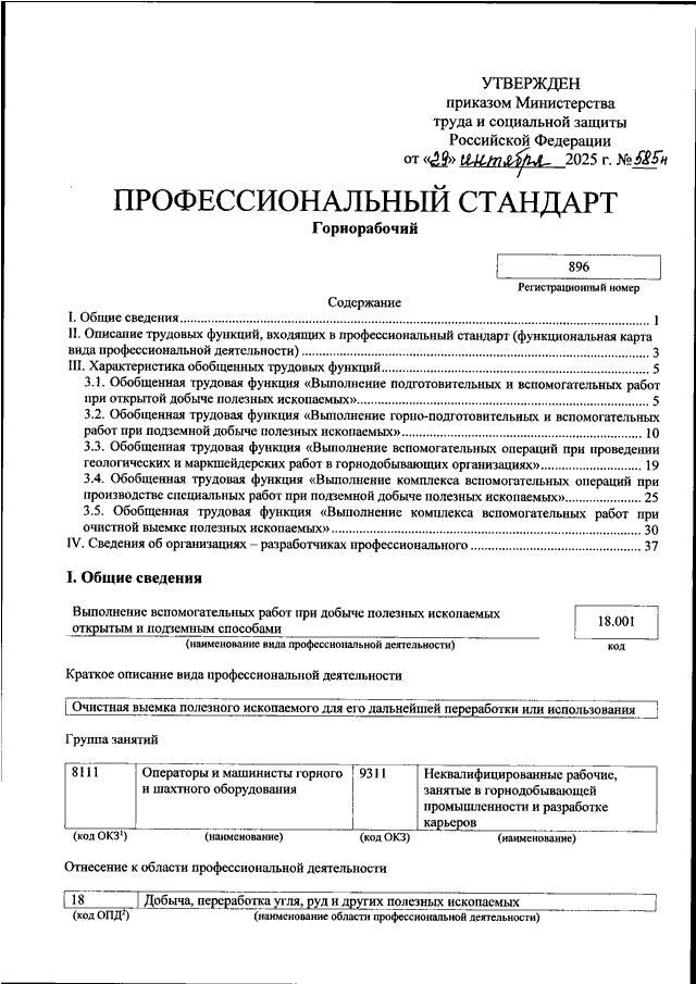 "ОБ УТВЕРЖДЕНИИ ПРОФЕССИОНАЛЬНОГО СТАНДАРТА "ГОРНОРАБОЧИЙ"