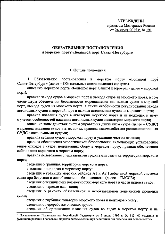 "ОБ УТВЕРЖДЕНИИ ОБЯЗАТЕЛЬНЫХ ПОСТАНОВЛЕНИЙ В МОРСКОМ ПОРТУ "БОЛЬШОЙ ПОРТ САНКТ-ПЕТЕРБУРГ"