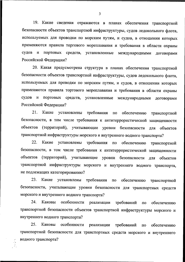 "ОБ УТВЕРЖДЕНИИ ПЕРЕЧНЕЙ ВОПРОСОВ, ПОДЛЕЖАЩИХ ПРИМЕНЕНИЮ ОРГАНАМИ АТТЕСТАЦИИ (АТТЕСТУЮЩИМИ ОРГАНИЗАЦИЯМИ) ДЛЯ ПРОВЕРКИ СООТВЕТСТВИЯ ЗНАНИЙ, УМЕНИЙ И НАВЫКОВ АТТЕСТУЕМЫХ ЛИЦ ТРЕБОВАНИЯМ ЗАКОНОДАТЕЛЬСТВА РОССИЙСКОЙ ФЕДЕРАЦИИ О ТРАНСПОРТНОЙ БЕЗОПАСНОСТИ ПРИ ПРОВЕДЕНИИ АТТЕСТАЦИИ СИЛ ОБЕСПЕЧЕНИЯ ТРАНСПОРТНОЙ БЕЗОПАСНОСТИ НА МОРСКОМ И ВНУТРЕННЕМ ВОДНОМ ТРАНСПОРТЕ"