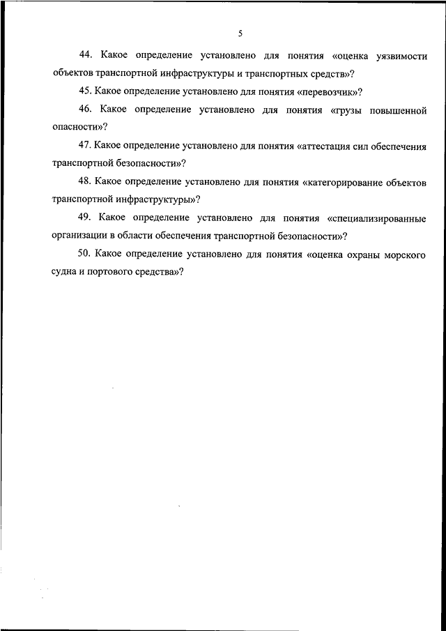 "ОБ УТВЕРЖДЕНИИ ПЕРЕЧНЕЙ ВОПРОСОВ, ПОДЛЕЖАЩИХ ПРИМЕНЕНИЮ ОРГАНАМИ АТТЕСТАЦИИ (АТТЕСТУЮЩИМИ ОРГАНИЗАЦИЯМИ) ДЛЯ ПРОВЕРКИ СООТВЕТСТВИЯ ЗНАНИЙ, УМЕНИЙ И НАВЫКОВ АТТЕСТУЕМЫХ ЛИЦ ТРЕБОВАНИЯМ ЗАКОНОДАТЕЛЬСТВА РОССИЙСКОЙ ФЕДЕРАЦИИ О ТРАНСПОРТНОЙ БЕЗОПАСНОСТИ ПРИ ПРОВЕДЕНИИ АТТЕСТАЦИИ СИЛ ОБЕСПЕЧЕНИЯ ТРАНСПОРТНОЙ БЕЗОПАСНОСТИ НА МОРСКОМ И ВНУТРЕННЕМ ВОДНОМ ТРАНСПОРТЕ"