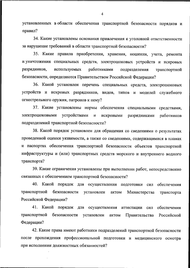 "ОБ УТВЕРЖДЕНИИ ПЕРЕЧНЕЙ ВОПРОСОВ, ПОДЛЕЖАЩИХ ПРИМЕНЕНИЮ ОРГАНАМИ АТТЕСТАЦИИ (АТТЕСТУЮЩИМИ ОРГАНИЗАЦИЯМИ) ДЛЯ ПРОВЕРКИ СООТВЕТСТВИЯ ЗНАНИЙ, УМЕНИЙ И НАВЫКОВ АТТЕСТУЕМЫХ ЛИЦ ТРЕБОВАНИЯМ ЗАКОНОДАТЕЛЬСТВА РОССИЙСКОЙ ФЕДЕРАЦИИ О ТРАНСПОРТНОЙ БЕЗОПАСНОСТИ ПРИ ПРОВЕДЕНИИ АТТЕСТАЦИИ СИЛ ОБЕСПЕЧЕНИЯ ТРАНСПОРТНОЙ БЕЗОПАСНОСТИ НА МОРСКОМ И ВНУТРЕННЕМ ВОДНОМ ТРАНСПОРТЕ"