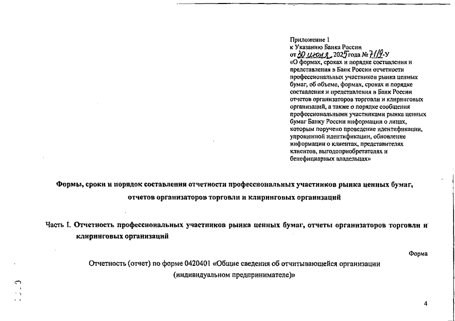 УКАЗАНИЕ ЦБ РФ от 30.06.2025 N 7119-У (Начало)