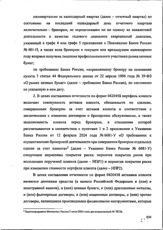 "О ФОРМАХ, СРОКАХ И ПОРЯДКЕ СОСТАВЛЕНИЯ И ПРЕДСТАВЛЕНИЯ В БАНК РОССИИ ОТЧЕТНОСТИ ПРОФЕССИОНАЛЬНЫХ УЧАСТНИКОВ РЫНКА ЦЕННЫХ БУМАГ, ОБ ОБЪЕМЕ, ФОРМАХ, СРОКАХ И ПОРЯДКЕ СОСТАВЛЕНИЯ И ПРЕДСТАВЛЕНИЯ В БАНК РОССИИ ОТЧЕТОВ ОРГАНИЗАТОРОВ ТОРГОВЛИ И КЛИРИНГОВЫХ ОРГАНИЗАЦИЙ, А ТАКЖЕ О ПОРЯДКЕ СООБЩЕНИЯ ПРОФЕССИОНАЛЬНЫМИ УЧАСТНИКАМИ РЫНКА ЦЕННЫХ БУМАГ БАНКУ РОССИИ ИНФОРМАЦИИ О ЛИЦАХ, КОТОРЫМ ПОРУЧЕНО ПРОВЕДЕНИЕ ИДЕНТИФИКАЦИИ, УПРОЩЕННОЙ ИДЕНТИФИКАЦИИ, ОБНОВЛЕНИЕ ИНФОРМАЦИИ О КЛИЕНТАХ, ПРЕДСТАВИТЕЛЯХ КЛИЕНТОВ, ВЫГОДОПРЕОБРЕТАТЕЛЯХ И БЕНЕФИЦИАРНЫХ ВЛАДЕЛЬЦАХ"