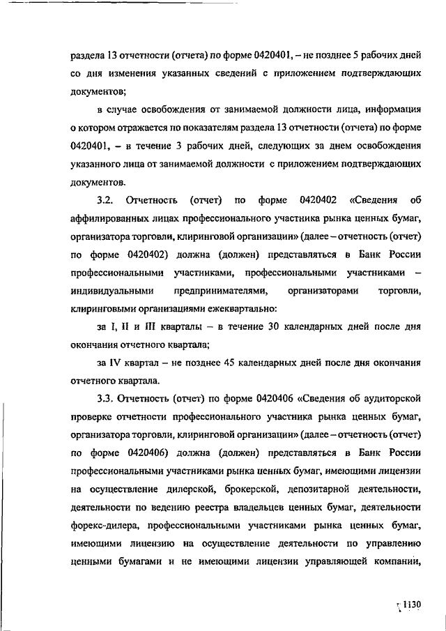 "О ФОРМАХ, СРОКАХ И ПОРЯДКЕ СОСТАВЛЕНИЯ И ПРЕДСТАВЛЕНИЯ В БАНК РОССИИ ОТЧЕТНОСТИ ПРОФЕССИОНАЛЬНЫХ УЧАСТНИКОВ РЫНКА ЦЕННЫХ БУМАГ, ОБ ОБЪЕМЕ, ФОРМАХ, СРОКАХ И ПОРЯДКЕ СОСТАВЛЕНИЯ И ПРЕДСТАВЛЕНИЯ В БАНК РОССИИ ОТЧЕТОВ ОРГАНИЗАТОРОВ ТОРГОВЛИ И КЛИРИНГОВЫХ ОРГАНИЗАЦИЙ, А ТАКЖЕ О ПОРЯДКЕ СООБЩЕНИЯ ПРОФЕССИОНАЛЬНЫМИ УЧАСТНИКАМИ РЫНКА ЦЕННЫХ БУМАГ БАНКУ РОССИИ ИНФОРМАЦИИ О ЛИЦАХ, КОТОРЫМ ПОРУЧЕНО ПРОВЕДЕНИЕ ИДЕНТИФИКАЦИИ, УПРОЩЕННОЙ ИДЕНТИФИКАЦИИ, ОБНОВЛЕНИЕ ИНФОРМАЦИИ О КЛИЕНТАХ, ПРЕДСТАВИТЕЛЯХ КЛИЕНТОВ, ВЫГОДОПРЕОБРЕТАТЕЛЯХ И БЕНЕФИЦИАРНЫХ ВЛАДЕЛЬЦАХ"