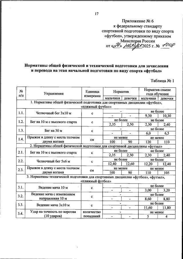 "ОБ УТВЕРЖДЕНИИ ФЕДЕРАЛЬНОГО СТАНДАРТА СПОРТИВНОЙ ПОДГОТОВКИ ПО ВИДУ СПОРТА "ФУТБОЛ"