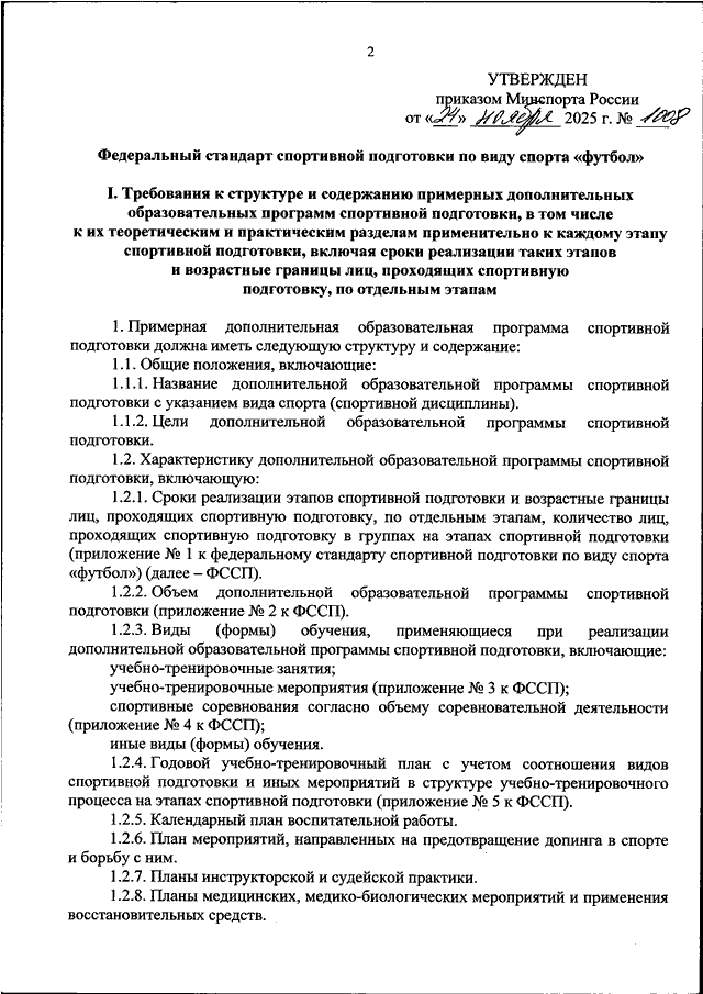 ПРИКАЗ Минспорта РФ от 24.11.2025 N 1008