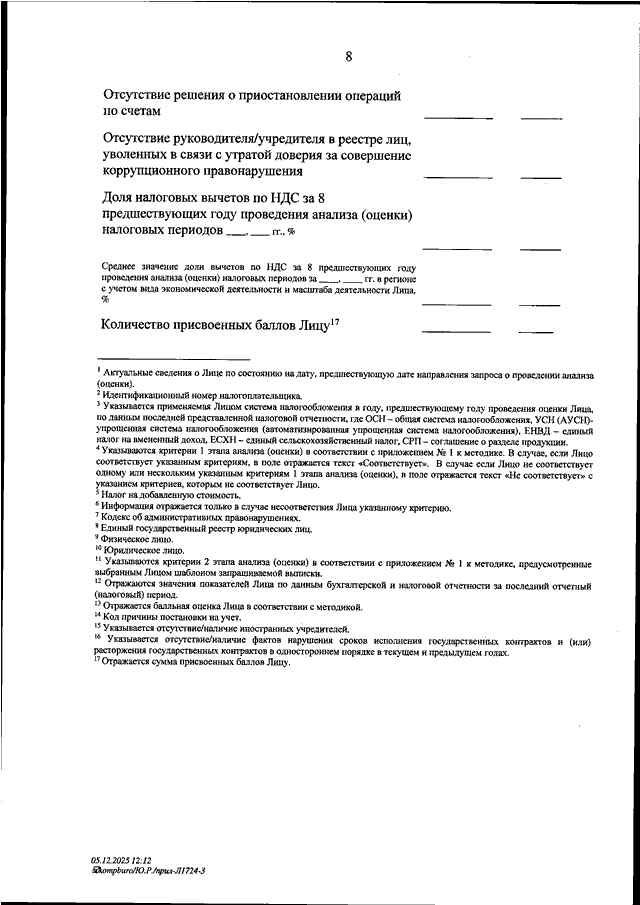"ОБ УТВЕРЖДЕНИИ МЕТОДИКИ ПРОВЕДЕНИЯ АНАЛИЗА (ОЦЕНКИ) СВЕДЕНИЙ О ФИНАНСОВО - ХОЗЯЙСТВЕННОЙ ДЕЯТЕЛЬНОСТИ ЮРИДИЧЕСКОГО ЛИЦА (ИНДИВИДУАЛЬНОГО ПРЕДПРИНИМАТЕЛЯ), ПОРЯДКА НАПРАВЛЕНИЯ ЗАПРОСА О ПРОВЕДЕНИИ АНАЛИЗА (ОЦЕНКИ) СВЕДЕНИЙ О ФИНАНСОВО - ХОЗЯЙСТВЕННОЙ ДЕЯТЕЛЬНОСТИ ЮРИДИЧЕСКОГО ЛИЦА (ИНДИВИДУАЛЬНОГО ПРЕДПРИНИМАТЕЛЯ) И ПОРЯДКА ПРЕДОСТАВЛЕНИЯ РЕЗУЛЬТАТОВ ПРОВЕДЕННОГО АНАЛИЗА (ОЦЕНКИ) ТАКИХ СВЕДЕНИЙ"