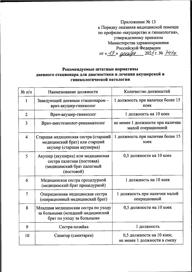 ПРИКАЗ Минздрава РФ от 19.12.2025 N 747н