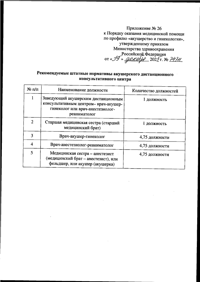 ПРИКАЗ Минздрава РФ от 19.12.2025 N 747н