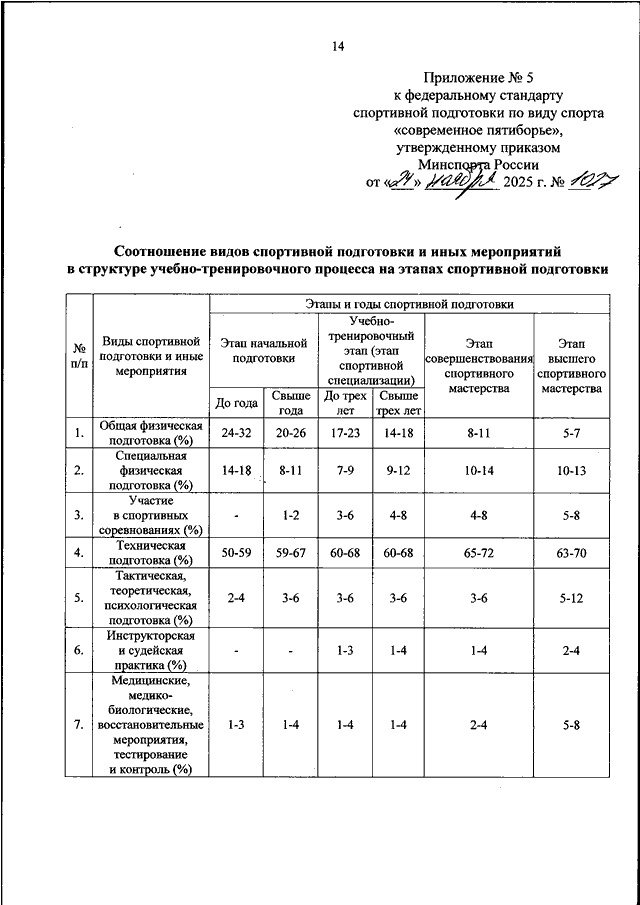 ПРИКАЗ Минспорта РФ от 24.11.2025 N 1027