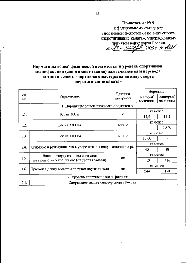 "ОБ УТВЕРЖДЕНИИ ФЕДЕРАЛЬНОГО СТАНДАРТА СПОРТИВНОЙ ПОДГОТОВКИ ПО ВИДУ СПОРТА "ПЕРЕТЯГИВАНИЕ КАНАТА"