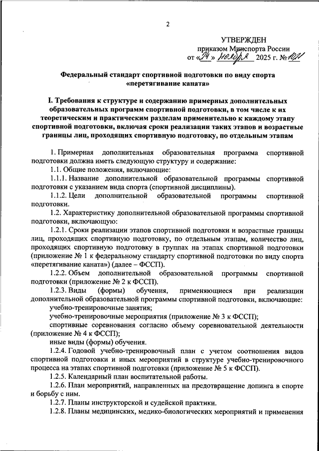 ПРИКАЗ Минспорта РФ от 24.11.2025 N 1021