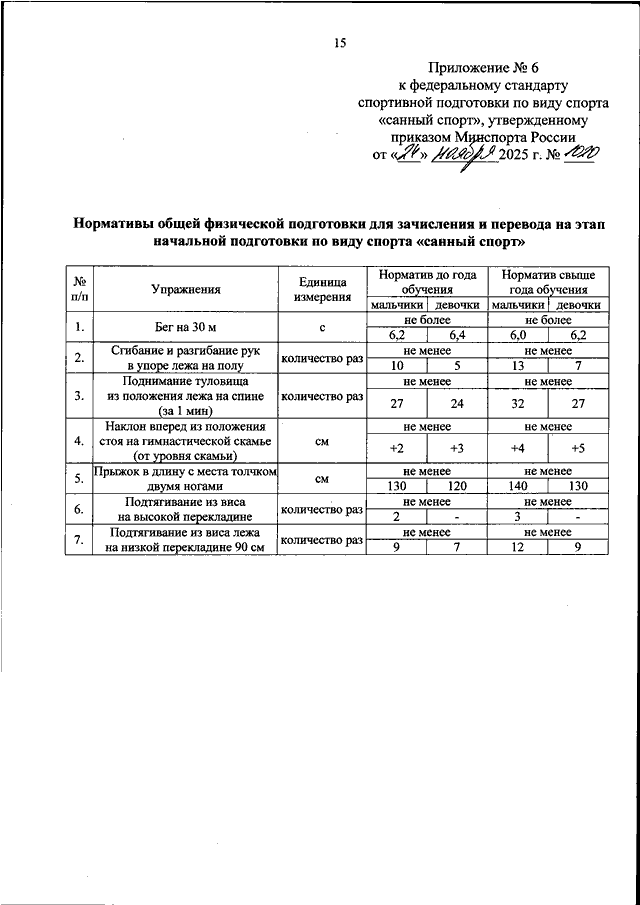 ПРИКАЗ Минспорта РФ от 24.11.2025 N 1020