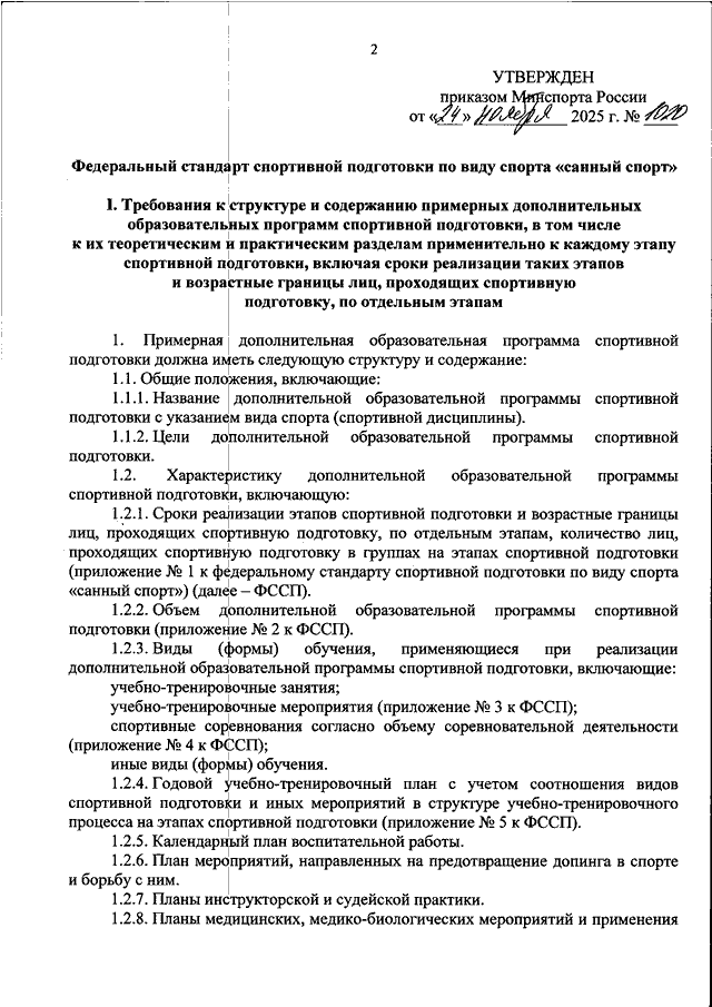 ПРИКАЗ Минспорта РФ от 24.11.2025 N 1020