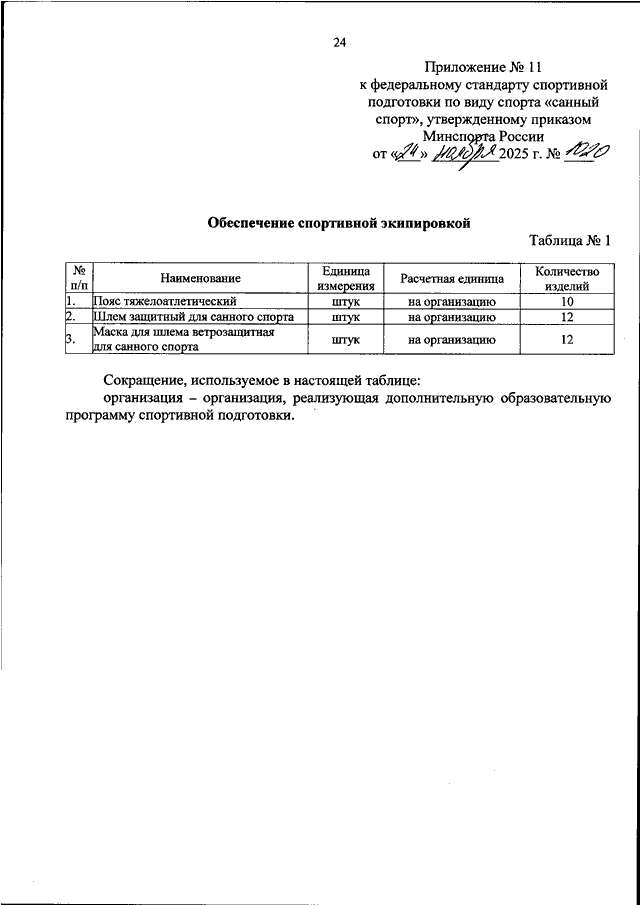 ПРИКАЗ Минспорта РФ от 24.11.2025 N 1020