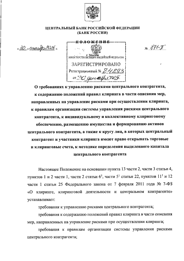 ПОЛОЖЕНИЕ ЦБ РФ от 30.09.2025 N 871-П