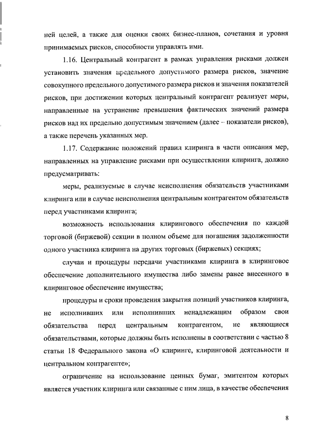 "О ТРЕБОВАНИЯХ К УПРАВЛЕНИЮ РИСКАМИ ЦЕНТРАЛЬНОГО КОНТРАГЕНТА, К СОДЕРЖАНИЮ ПОЛОЖЕНИЙ ПРАВИЛ КЛИРИНГА В ЧАСТИ ОПИСАНИЯ МЕР, НАПРАВЛЕННЫХ НА УПРАВЛЕНИЕ РИСКАМИ ПРИ ОСУЩЕСТВЛЕНИИ КЛИРИНГА, К ПРАВИЛАМ ОРГАНИЗАЦИИ СИСТЕМЫ УПРАВЛЕНИЯ РИСКАМИ ЦЕНТРАЛЬНОГО КОНТРАГЕНТА, К ИНДИВИДУАЛЬНОМУ И КОЛЛЕКТИВНОМУ КЛИРИНГОВОМУ ОБЕСПЕЧЕНИЮ, РАЗМЕЩЕНИЮ ИМУЩЕСТВА И ФОРМИРОВАНИЮ АКТИВОВ ЦЕНТРАЛЬНОГО КОНТРАГЕНТА, А ТАКЖЕ К КРУГУ ЛИЦ, В КОТОРЫХ ЦЕНТРАЛЬНЫЙ КОНТРАГЕНТ И УЧАСТНИКИ КЛИРИНГА ИМЕЮТ ПРАВО ОТКРЫВАТЬ ТОРГОВЫЕ И КЛИРИНГОВЫЕ СЧЕТА, К МЕТОДИКЕ ОПРЕДЕЛЕНИЯ ВЫДЕЛЕННОГО КАПИТАЛА ЦЕНТРАЛЬНОГО КОНТРАГЕНТА"