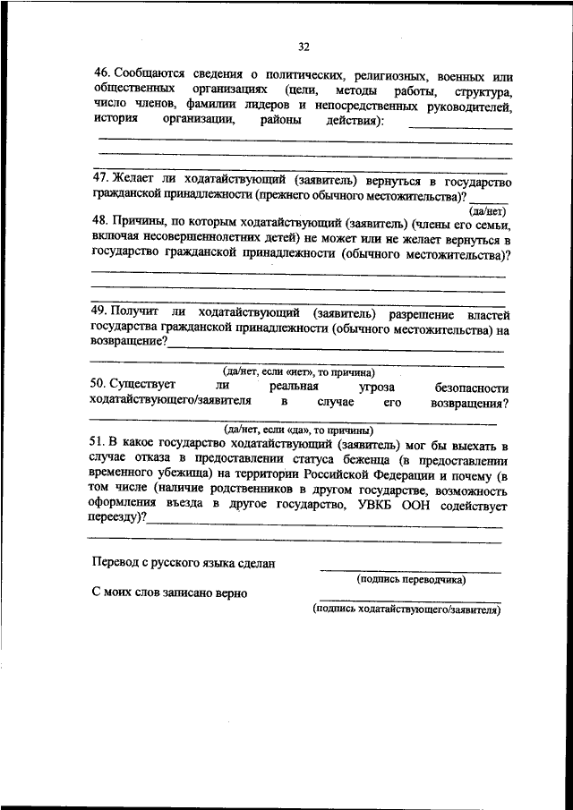 "ОБ УТВЕРЖДЕНИИ ИНСТРУКЦИИ ПО ОРГАНИЗАЦИЙ ДЕЯТЕЛЬНОСТИ МИНИСТЕРСТВА ВНУТРЕННИХ ДЕЛ РОССИЙСКОЙ ФЕДЕРАЦИИ И ЕГО ТЕРРИТОРИАЛЬНЫХ ОРГАНОВ ПО ОБЕСПЕЧЕНИЮ ПРИНЯТИЯ РЕШЕНИЙ ПРИ РАССМОТРЕНИИ ХОДАТАЙСТВ ПРИЗНАНИИ БЕЖЕНЦЕМ НА ТЕРРИТОРИИ РОССИЙСКОЙ ФЕДЕРАЦИИ И ЗАЯВЛЕНИЙ ПРЕДОСТАВЛЕНИИ ВРЕМЕННОГО УБЕЖИЩА И ТЕРРИТОРИИ РОССИЙСКОЙ ФЕДЕРАЦИИ ФОРМЫ ТАКОГО ЗАЯВЛЕНИЯ"