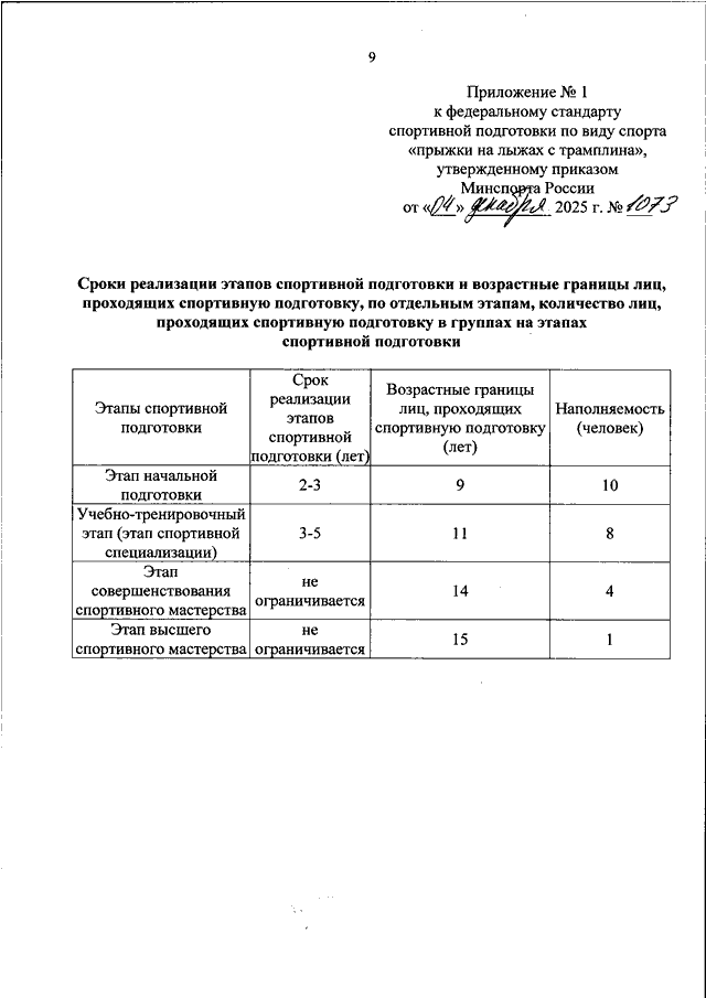 ПРИКАЗ Минспорта РФ от 04.12.2025 N 1073