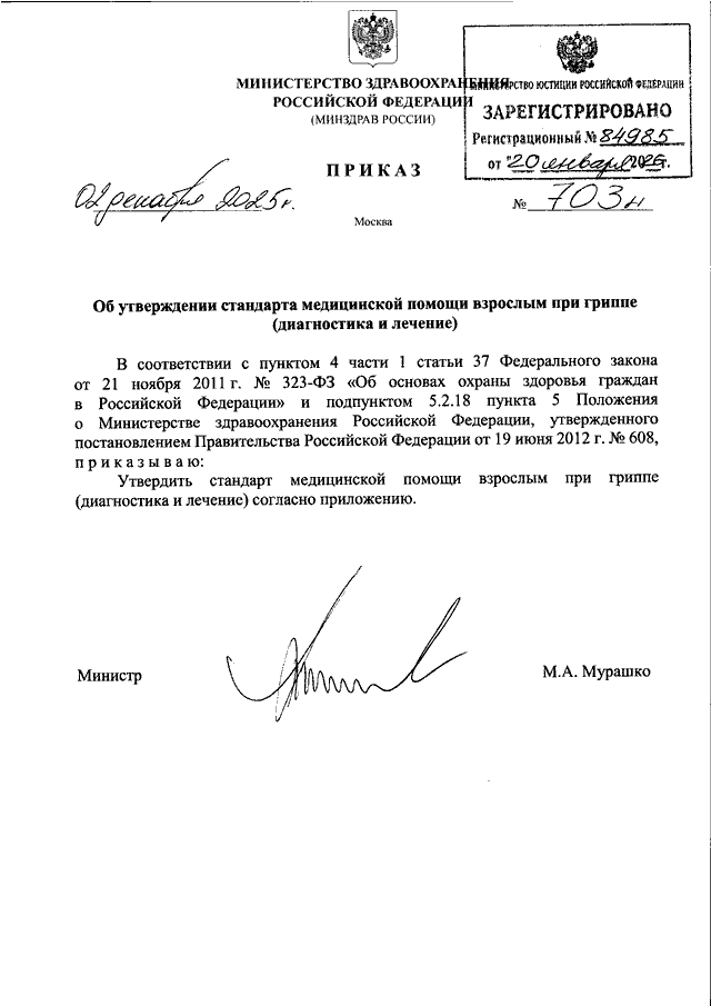 ПРИКАЗ Минздрава РФ от 02.12.2025 N 703н