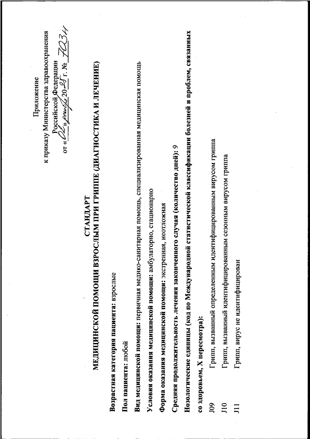 "ОБ УТВЕРЖДЕНИИ СТАНДАРТА МЕДИЦИНСКОЙ ПОМОЩИ ВЗРОСЛЫМ ПРИ ГРИППЕ (ДИАГНОСТИКА И ЛЕЧЕНИЕ)"