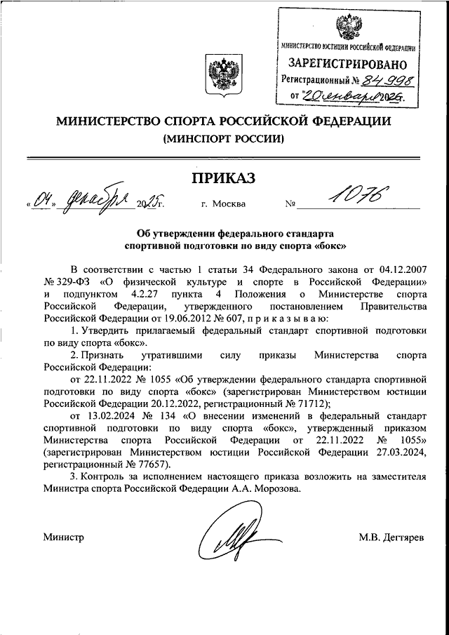 ПРИКАЗ Минспорта РФ от 04.12.2025 N 1076