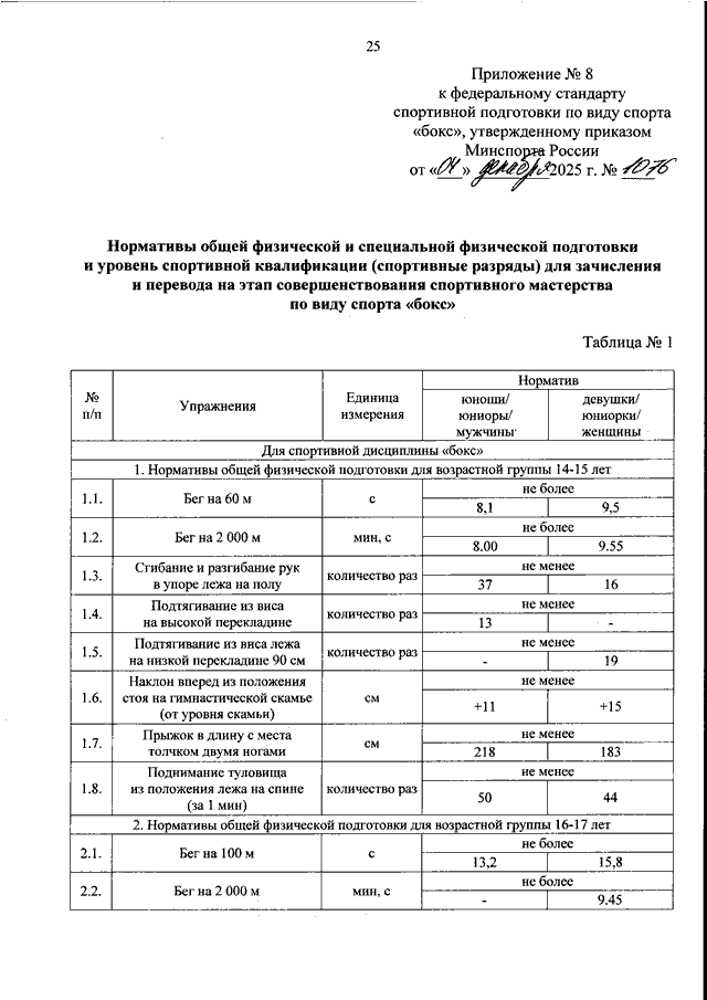 ПРИКАЗ Минспорта РФ от 04.12.2025 N 1076