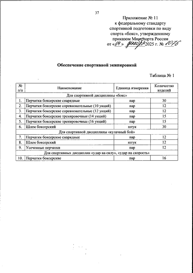ПРИКАЗ Минспорта РФ от 04.12.2025 N 1076