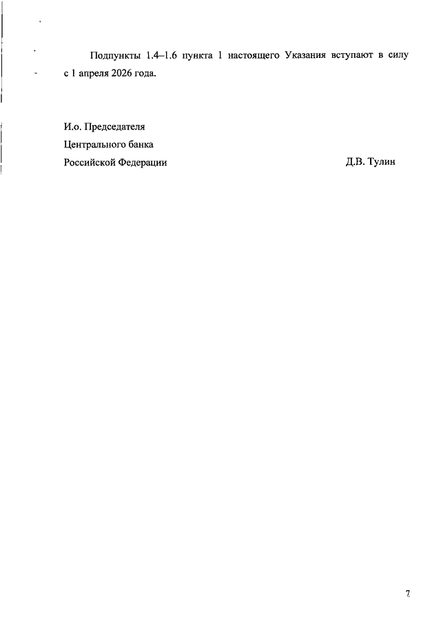 УКАЗАНИЕ ЦБ РФ от 05.08.2025 N 7139-У